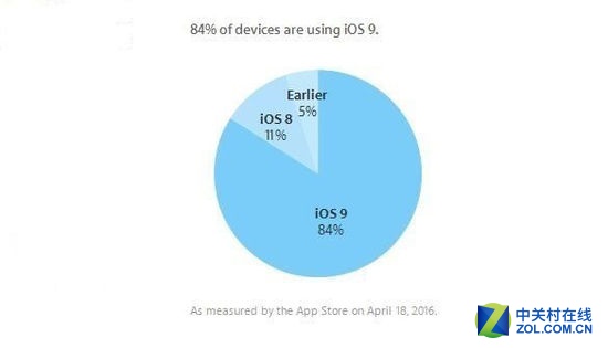 最新消息,5月13日消息,苹果近日公布了旗下iOS系统的安装情况,数据显示,最近三周左右苹果iOS9系统的安装率基本没变,仍为84%。