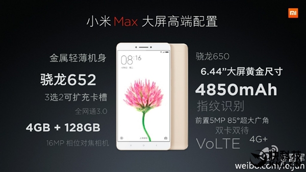 今天晚上,雷军又在微博上对小米Max进行“自夸”。雷军表示,骁龙650/652是高通定位高端的处理器,而且很多厂商也在使用这款处理器做高端手机。