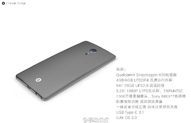 据悉该款IUNI U4将使用一块1920x1080像素分辨率的5.2英寸屏幕,搭载高通骁龙820处理器,内置4GB/6GB运行内存和64GB/128GB本地存储空间,采用索尼IMX377传感器的1300万像素主摄像头,配有侧指纹识别传感器及USB Type-C接口,预装IUNI OS 2.0系统。