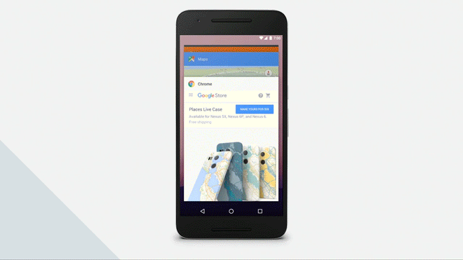 在计算机上工作的最好的事情是能够同时在两个窗口查看和工作。Android N可以让你在手机上也能体验这样的方便。多窗口将允许两个应用程序在新的分屏模式下并排或上下运行。(Android TV将有独立的画中画多窗口模式。)更妙的是:分屏模式还支持拖放功能。