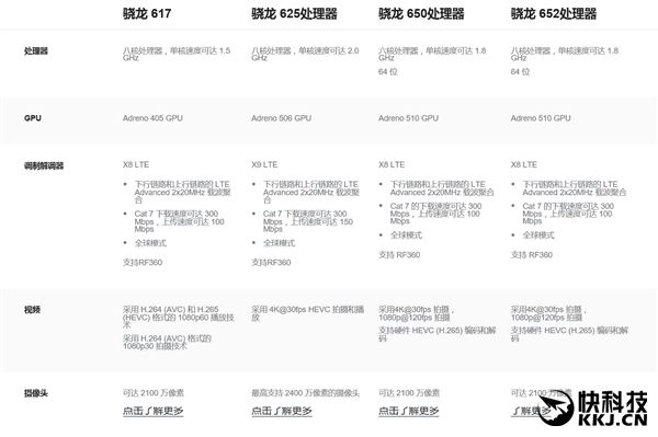 官方规格显示,骁龙625为八核心A53架构,主频2GHz,Adreno 506 GPU,性能在骁龙617和骁龙650之间。