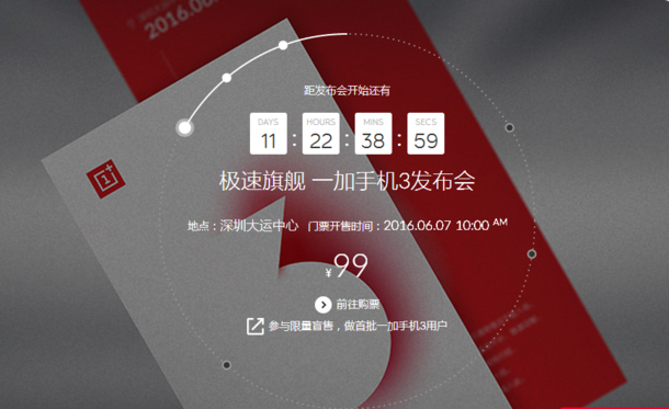 此次一加手机3发布会的门票售价为99元,而发布会定在了6月15日在深圳大运中心举行,门票将在6月7日10:00正式发售。