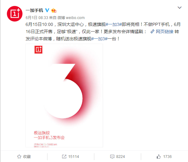 一加手机官网目前已经开启限量1000台的盲售,定价为2999元,最终以发布会正是售价为准,多退少补。从以上曝光的信息以及这个定价来看,此次盲售的很有可能就是一加3高配版,2999的价格应该和该版本的最终售价相差不大。而百万现货的储备此次则或将成为一加3的一击必杀,相比发布已久却至今缺货的小米5尊享版,一加3则可能满足一大部分急于换机或体验骁龙820的消费者。