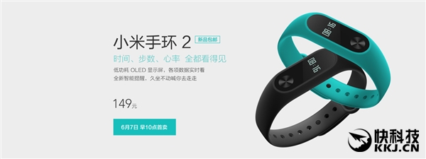 今天上午10:00,小米手环2将首发开卖,小米网、小米之家、京东、天猫、苏宁多平台同步现货销售,可享受149元包邮。