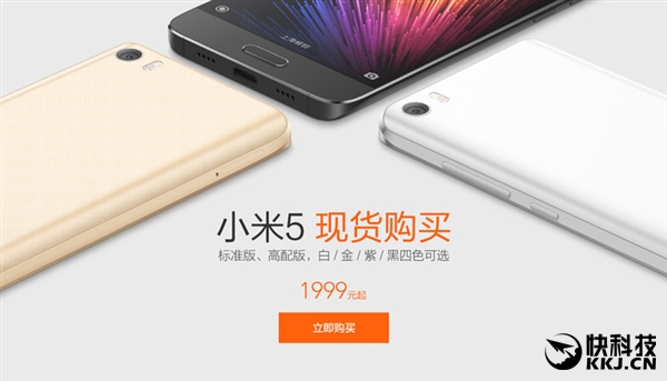 其中,小米5标准版、高配版不限量购买,1999元起;红米Note 3全网通版现货直降100元,899元起;红米3,现货699元起。