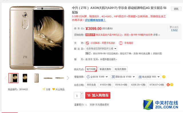 (中关村在线手机频道行情报道)2016年6月9日,中兴AXON天机7(行货)在京东商城热卖,该机目前最新售价为3099元。本机配件为:电池(内置)、充电器、数据线、说明书、保修卡等。中兴AXON天机7是一款重磅商务旗舰机,是一款依旧带有浓厚商务气息的高端机型,看起来非常沉稳。