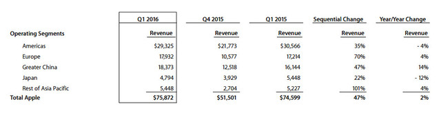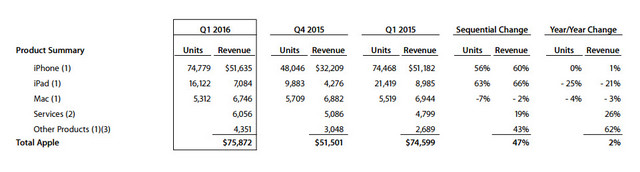 首先无疑是这个世界上最赚钱的科技公司,1月26日晚,苹果发布2016年第一财季业绩数据。报告显示,苹果第一财季营收为759亿美元,比上年同期的746亿美元增长1.7%;净利润为184亿美元,比上年同期的180亿美元增长1.9%。苹果第一财季营收和净利润均创历史新高,但增速已明显放缓。