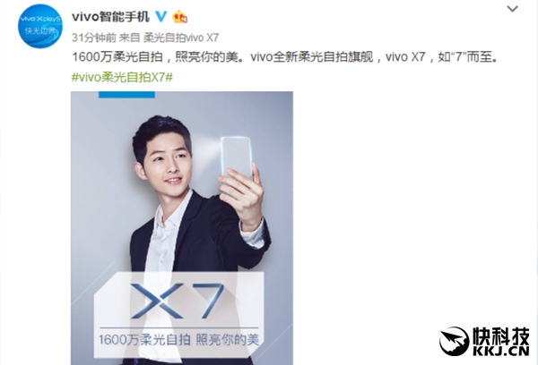 国民老公宋仲基代言!vivo X7自拍旗舰公布:1600万前置