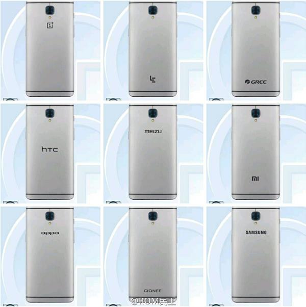 有意思的是,在一加发布这款手机之前,一位网友针对一加3流露出的曝光图P了张国产手机的“全家福”。