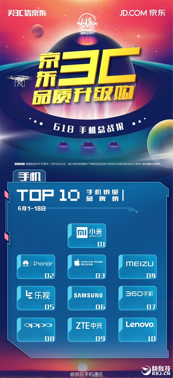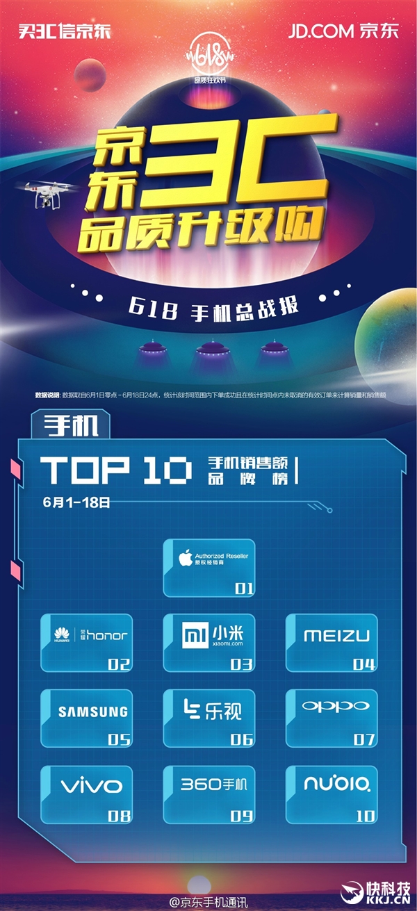 618活动结束了,京东也公布了最终战报,并特别突出了手机部分。