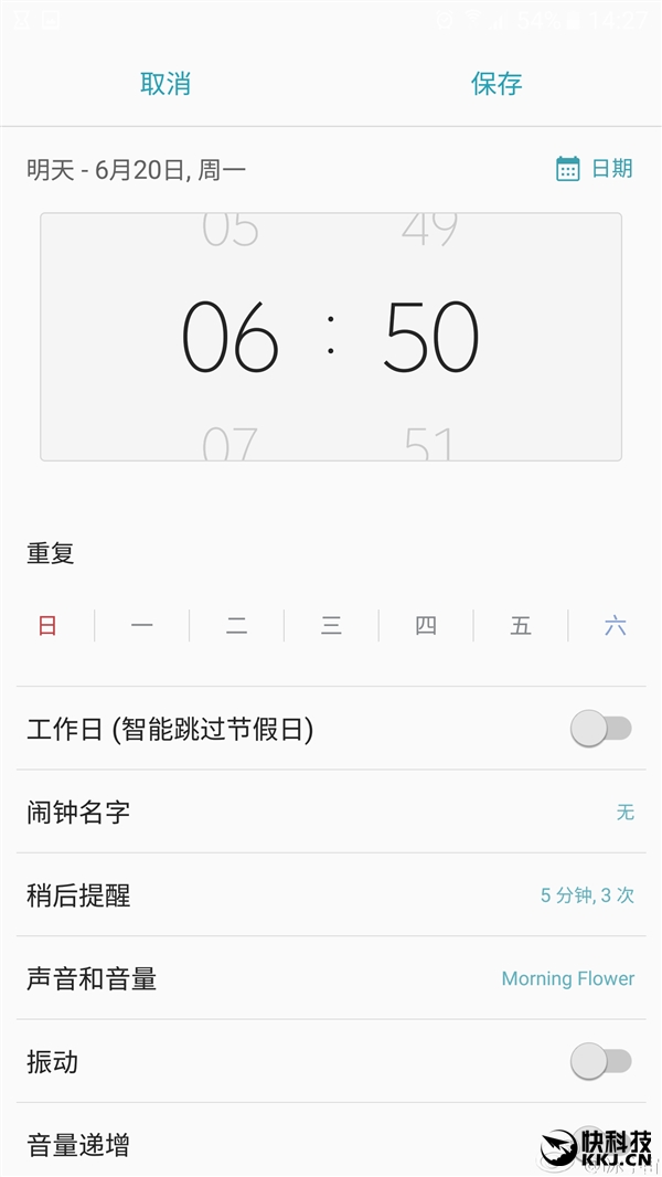 根据网友@i冰宇宙 曝光的最新中文版截图,Note 7采用了新的时钟应用,其界面设计看上去更加朴实无华,接近Google原生风格,又加入了很多变化。