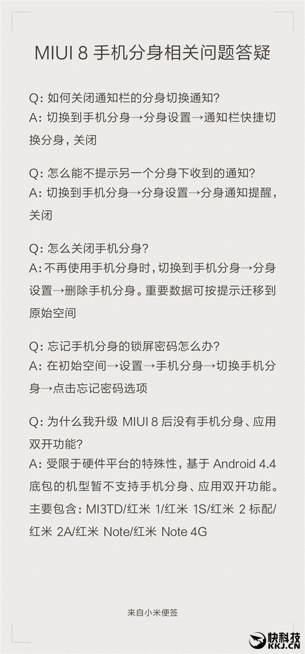 MIUI 8手机分身功能官方答疑:安卓4.4机型不支持