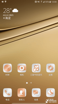 首先系统维持了三星风格,整体采用扁平化,不过为了与机身配色相统一,三星Galaxy C5采用的是主题与机身颜色相适配。所以针对GalaxyC5四种颜色,配色的默认主题与其机身颜色一致,例如笔者的枫叶金Galaxy C5就默认选择了一款名为“Gold Platinum”的主题,当然用户也能在设置中自由更改不同风格的主题。此外C5的系统界面滑动手感十分出色,相应迅速的同时,滚动的速度控制也恰到好处。