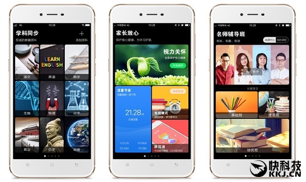此外,这款手机的特色是学习功能,而从宣传图上看,其设有“学科同步”、“家长放心”、“名师辅导”功能,同时手机内置有省流量模式,以便学生能在移动网络下的学习。