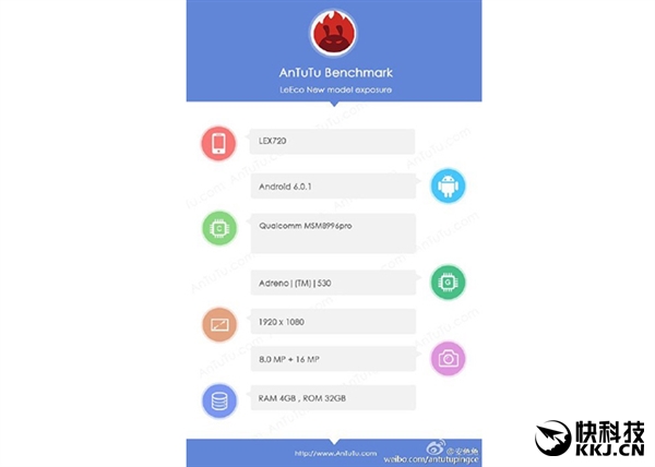 安兔兔此前还曾曝光过一款乐视新机LE X720,处理器检测为MSM8996PRO,应该就是骁龙821/823的官方公开编号。