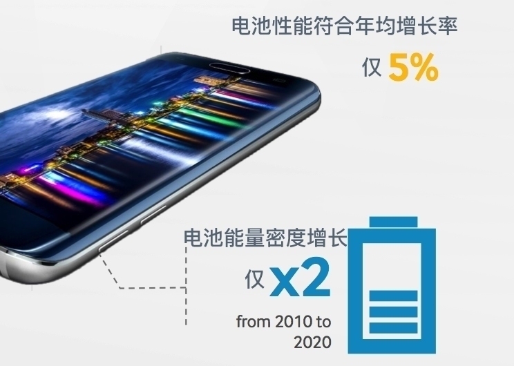 根据三星今年发布的一份名为《A Slimmer Yet More Powerful Mobile》的报告称,毫无疑问的,娱乐已经成了目前智能手机最主要的用途,其中尤为视频、游戏这种高耗能的应用最为流行;虽然自从2010年开始至今,蜂窝网络与WiFi网络20~30倍的速度提升以及视频分辨率34倍的提升都带来了更好的娱乐体验,但手机电池的性能和能量密度与之相比增长极为缓慢。
