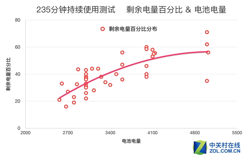 从R2=0.6198的“剩余电量百分比”与“电池电量”相关的趋势线来看,两者之间也存在着一定的联系。