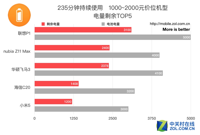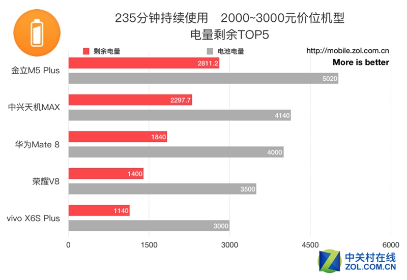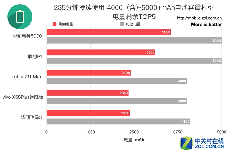 这里大电量党无疑取得了最终的全面胜利,雄踞排行榜前五的产品除nubia Z11 MAX之外电池电量均为5000mAh或者以上。