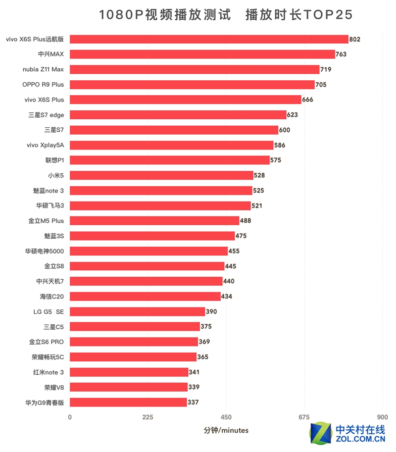 最后附加的两个小测试涉及到1080p视频播放,这也是目前特别是“追剧党”对于智能手机的几乎是首要用途,想要知道你的手机从满电状态到底能够播放多久本地1080p视频,或者在仅有10%电量剩余的时候还能够满足你多久的刷新番的需求,来看看最后的两项测试结果。