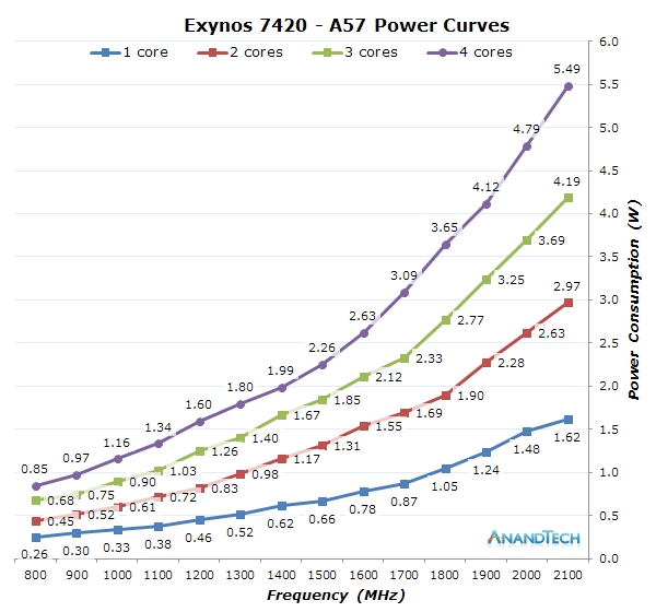 在Cortex-A7、A9这样具有满意的性耗比的核心退出历史舞台,big.LITTLE架构占据主流的时代,运行于2.4GHz的八核心CPU满载情况下就能轻松达到3~5W的功耗并严重发热,好在目前的小核心性能已经足够日常使用,整机的热控制也基本不允许这样极端的情况出现,不过处理器依然是整机绝对的耗电大户。