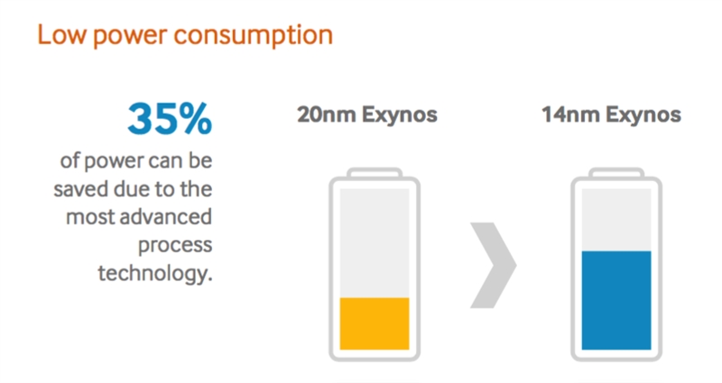 从三星电机的名为《A SLIMMER YET MORE POWERFUL MOBILE》的白皮书当中摘几个例子,就可以发现硬件的省电很大程度上依赖于芯片制造业的工艺升级,比如三星的心2000万像素CMOS、Exynos 7420这样的14nm处理器以及14nm的Exynos 333调制解调器芯片,都在比上一代工艺增进的基础上大大降低了功耗水平。