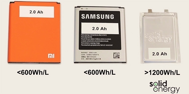 这方面此前一家名为SolidEnergy的公司就推出过高达1200Wh/L的电池,提升能量存储的秘密在于他们没有采用传统的电极材料石墨,而是采用了薄片状的锂金属箔,SolidEnergy表示使用该技术制作的电池可存储同重量电池两倍的能源,在经历300次充电之后依然能够维持80%的容量。据悉这种电池技术将在谷歌模块手机Project Ara中率先使用。