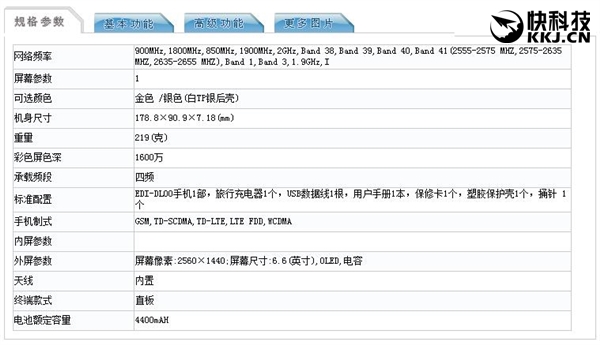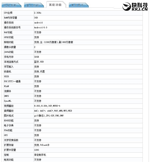 处理器是八核2.3GHz(显然麒麟950),内存3GB,存储容量32GB并可扩展最大128GB,摄像头后置1300万像素,前置800万像素,电池容量高达4400mAh,还有Android 6.0操作系统。