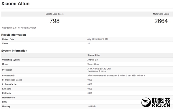 GeekBench跑分库中出现了一部新机,型号显示为Xiaomi Altun(阿尔金)。