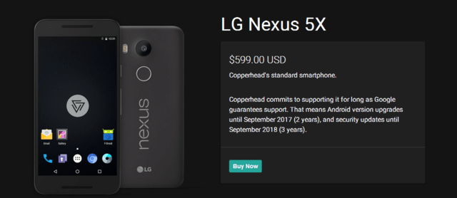 Copperhead OS版Nexus 5X(图片引自Copperhead)