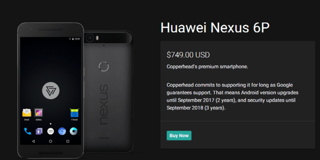 Copperhead OS版Nexus 6P(图片引自Copperhead)