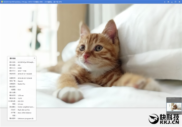 另外,由于图片并没有采用最大尺寸,所以目前也无法推测出红米Pro双摄像头的具体规格,只能看到光圈是F/2.0。