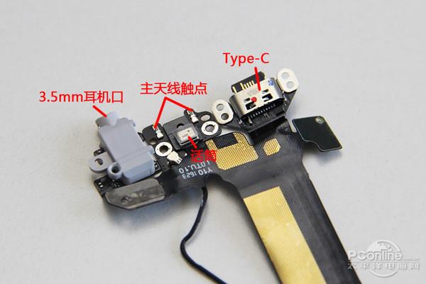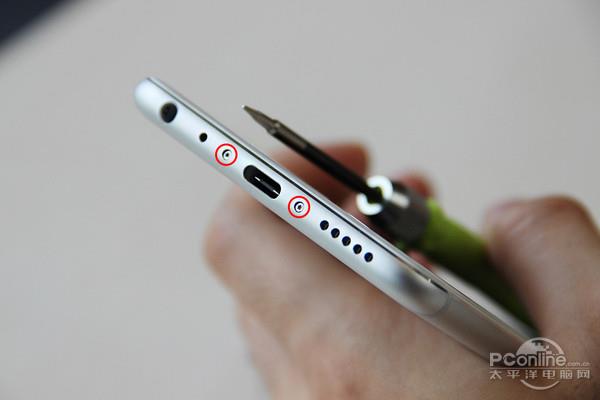 下移到机身底部的3.5mm耳机口,Typc-C口使用两颗螺丝进行独立固定。