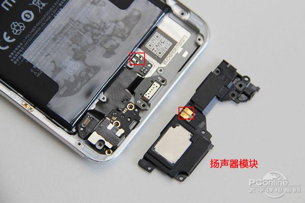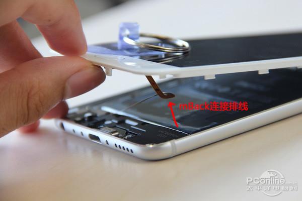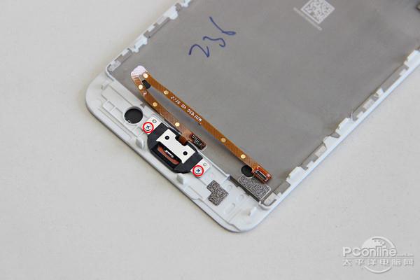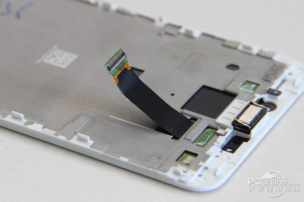 我们看到液晶/触屏的排线在机身的上部分,MX6使用了TDDI技术,把液晶IC和触控IC进行了整合。