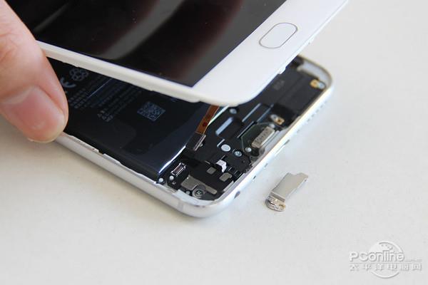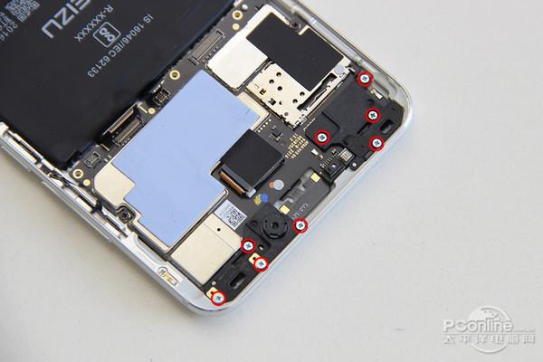 大多数采用一体化金属机身设计的手机都需要先卸下底部的梅花螺丝,才能分离金属中框。MX6和上一代MX5的拆解方法类似。