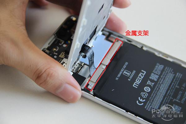 液晶、电源排线部分同样有金属支架固定,MX6在这些细节上确实做得不错。