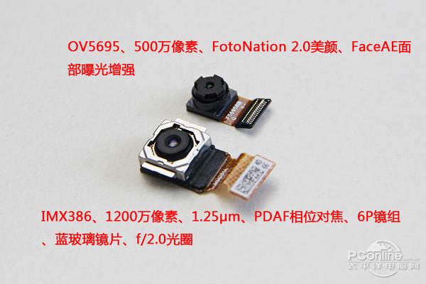相机方面,MX6是全球首款采用索尼Exmor RS IMX386堆栈式传感器的手机,像素为1200万,单位像素尺寸达到1.25μm,支持PDAF相位对焦,配合6P镜组 f/2.0光圈,整体效果可见本站的详细评测。而前置摄像头传感器为500万像素的OV5695,支持FotoNation 2.0美颜、FaceAE面部曝光增强等等。