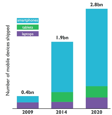 为什么ARM在智能手机上扮演了如此重要的角色?根据ARM公司在2015年9月的资料,逾95%智能手机采用ARM处理器,在平板上的渗透率也超过85%。
