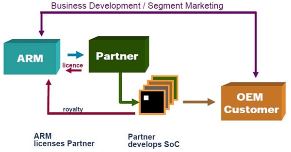 整个结构,就是:指令集──架构──整合──制程。而ARM的技术授权就集中于指令集和处理器架构,也是SoC最核心的部份,由于可知 ARM 的重要性有多大。
