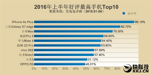 据悉,此次的数据统计日期为2016年1月1日~2016年6月30日,数据来源为安兔兔评测V6.0,满足单一机型评论统计量>2000条。此次的评选标准由上一次的好评数改成了好评率,这样数据的参考价值也会更高一些。
