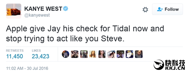 苹果有意收购好友公司Tidal 侃爷怒喷库克