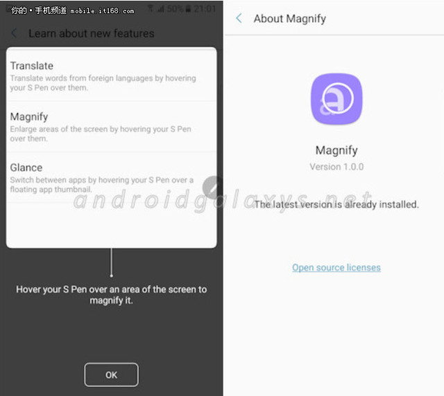 据外媒报道,三星Note 7 S Pen将带来三个新特性,分别是翻译(Translate)、放大(Magnify)和浏览(Glance)。