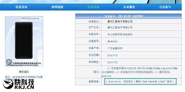 不过,在外界总结的5大遗憾中,“未使用骁龙821和6GB RAM”被提及。但很快,国行N9300在工信部的入网备案信息做了变动,新增“RAM 6GB+ROM 128GB”版本。