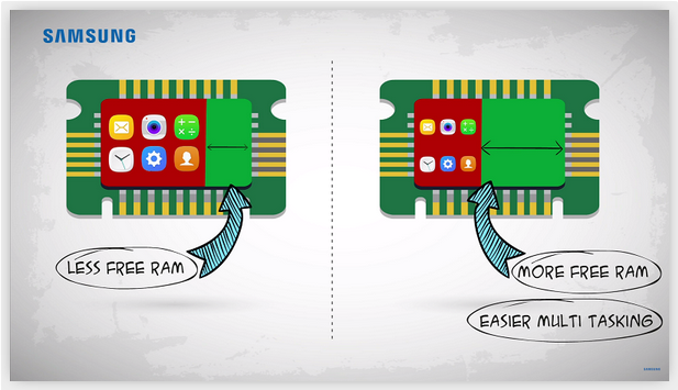 虽然目前手机向大内存发展是一个趋势,但受成本等因素的限制,许多入门产品依然只有1GB/2GB的运行内存,你知道作为手机行业领导者的三星对小内存产品的解决方案又是什么?