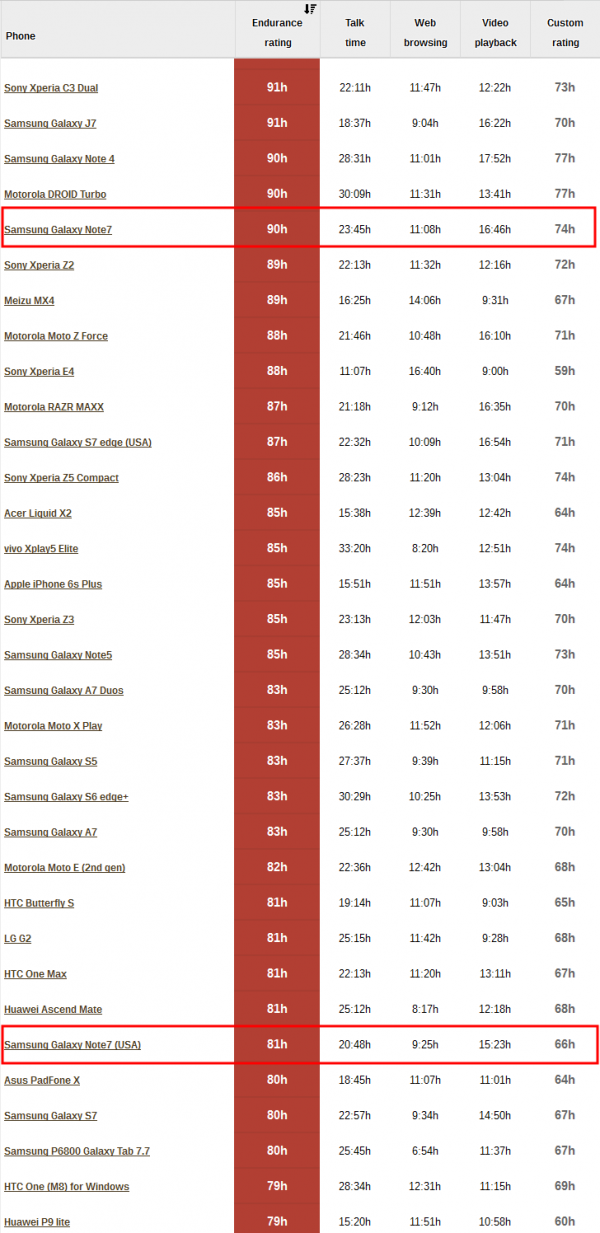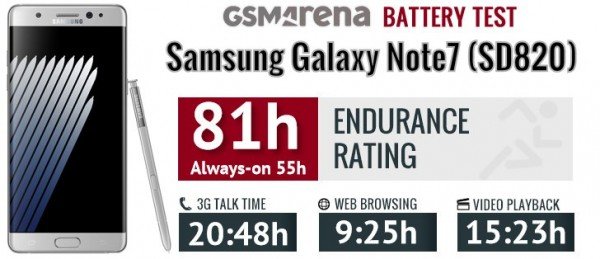 外媒GSMArena最近发布了三星Galaxy Note7的续航实测。从他们的实测数据来看,5.7英寸显示屏的Galaxy Note7电池容量为3500mAh,而不同版本之间的Note7所采用的处理器也不同,主要分为Exynos8890处理器和骁龙820处理器。下面我们来看看在日常使用时不同版本Galaxy Note7的耗电情况。