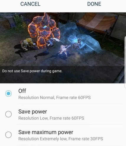 值得一提的是,今年三星在Galaxy Note7内加入了屏幕分辨率调节省电的技术,用户在进行游戏时可以锁定帧数到30FPS,开启这个选项后的Galaxy Note7在续航方面将会得到进一步的提升。