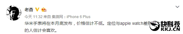 现在,手机中国联盟秘书长老杳在微博上爆料,小米首款智能手表将确定在本月发布,而它的确出自华米之手,售价价格估计不低