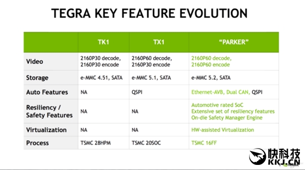 相较前两代产品,Parker支持2160P、60帧高清编解码,硬件辅助虚拟化技术、硬件安全等。