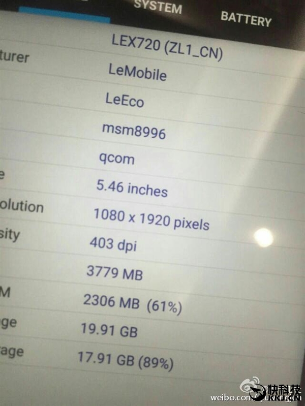 现在,微博网友@摩卡工社曝光了一组所谓乐2S Pro真机照,同时还有配置参数,其代号为Le X720,配备了5.5寸1080p屏,并且会首发骁龙821处理器。