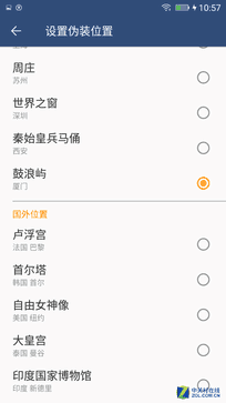 与金立M6一样,金立M6 Plus加入了防定位追踪,提供了N多模拟位置供大家在使用具体某个APP的时候使用。比如这里我选择了高德地图的模拟定位,显示我的地理位置“跑到”了鼓浪屿,如果你高兴,穿越到一个海外的位置也是可以的。