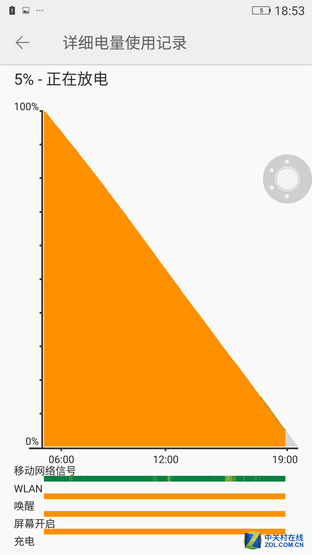 测试从凌晨5点开始,随后它一直播放视频直到晚上的18点53分,剩余电量达到5%测试结束。连续播放13小时53分钟视频,它的续航表现可以说吊打目前95%的智能手机。